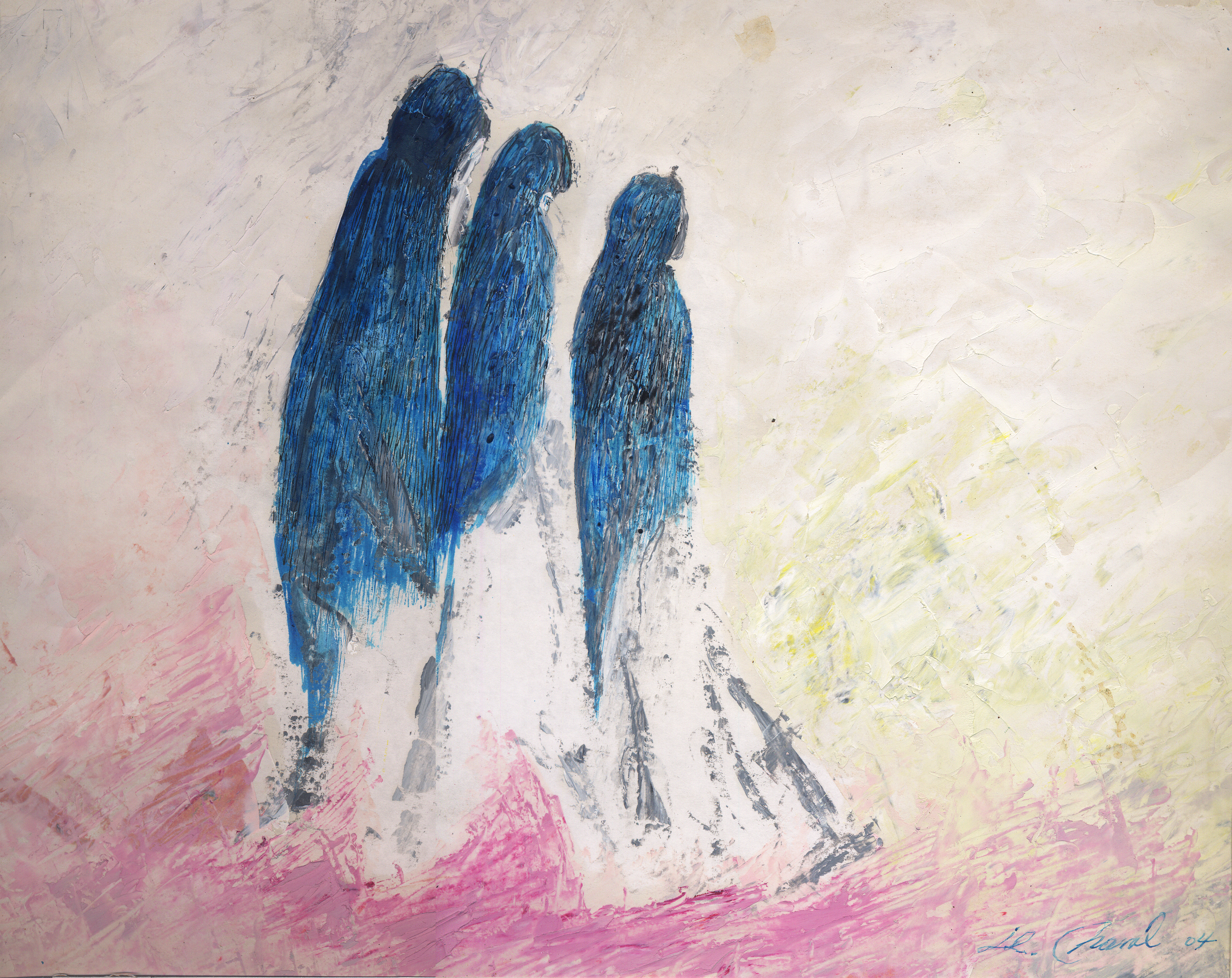 Presos Medio Oriente, óleo esgrafiado, fecha: 2000